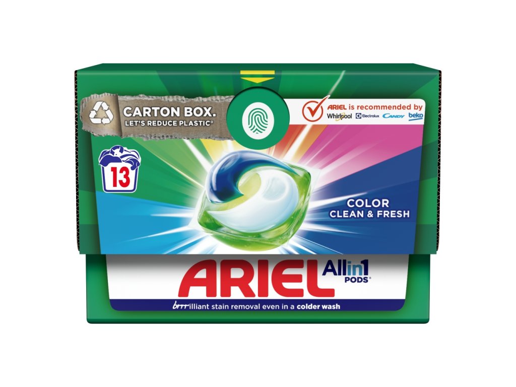 - Ariel All-in-1 POD: 1. Rimuove le macchie 2. Protegge i colori 3. Rinfresca 4. Protegge i tessuti 5. Progettato per il lavaggio a freddo