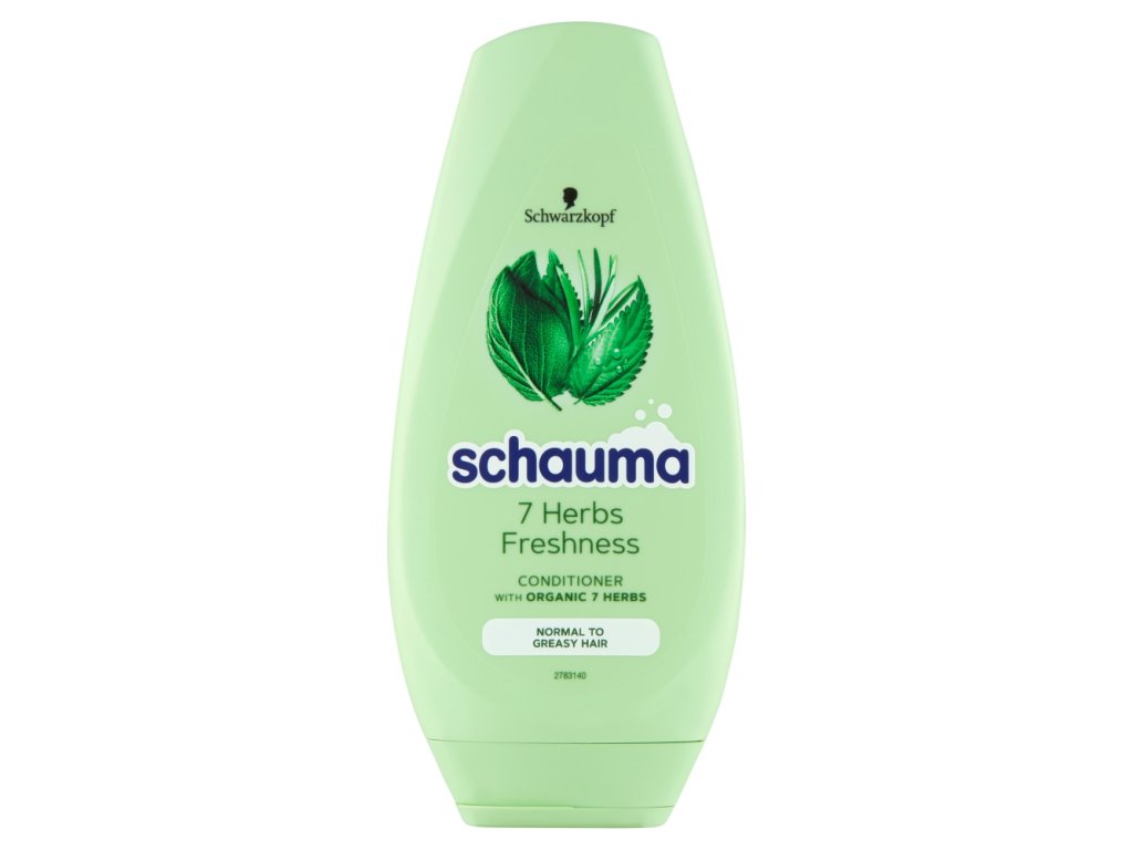Balsamo Schauma 7 Herbs Freshness con estratto biologico di 7 erbe per capelli da normali a grassi, che dona alla struttura del capello una leggera freschezza e un volume dall'aspetto naturale.