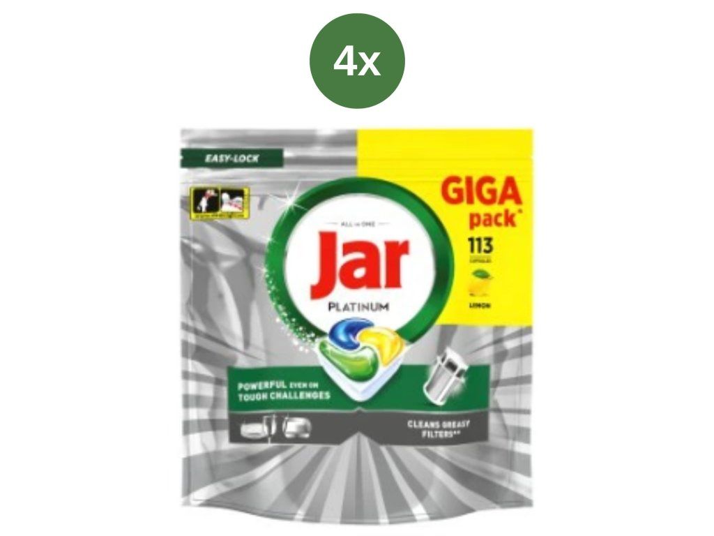 Le capsule per lavastoviglie Jar Platinum GIGA sono una soluzione premium tutto in uno per stoviglie pulite senza fatica. Grazie alla combinazione di gel e polvere, riescono a rimuovere anche il grasso più ostinato e i residui di cibo incrostati già al primo lavaggio.