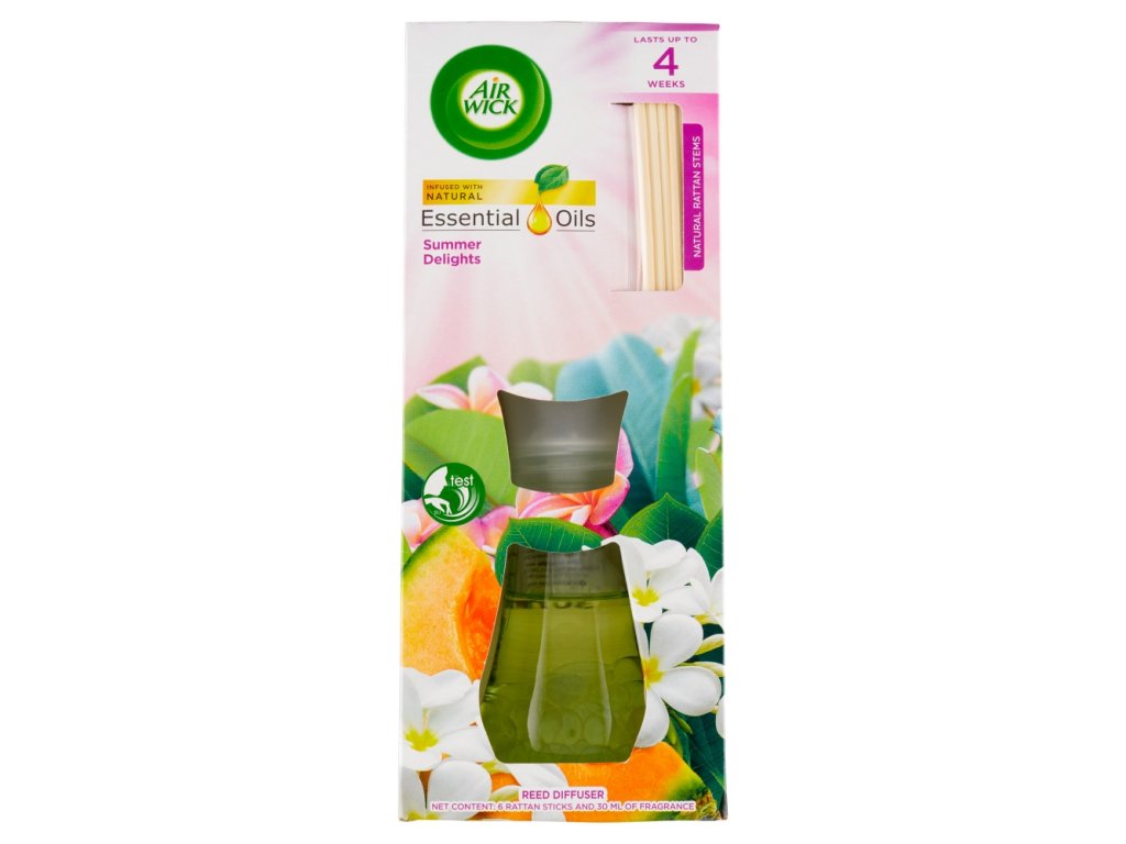 Il diffusore a bastoncini Air Wick utilizza steli di rattan naturale per diffondere delicatamente una piacevole fragranza. Crea un'atmosfera accogliente nella tua casa con questa fragranza naturale e un design elegante.