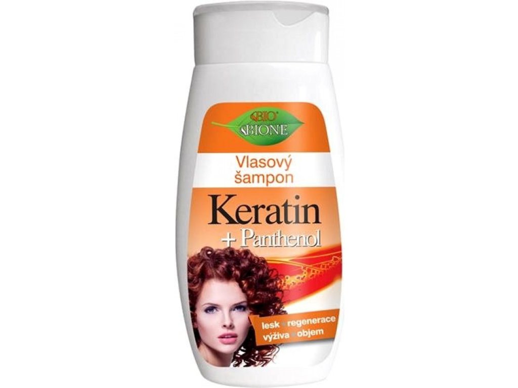 Lo shampoo Cheratina + Pantenolo contiene idrolizzato di cheratina, che completa la struttura del capello. La struttura del capello può essere danneggiata da tinture, luce solare o asciugatura con il phon. Utilizzando lo shampoo, i capelli diventano più forti, meno crespi e riacquistano la loro elasticità e lucentezza naturale. Lo shampoo produce una schiuma intensa, ma non appesantisce né secca la pelle.