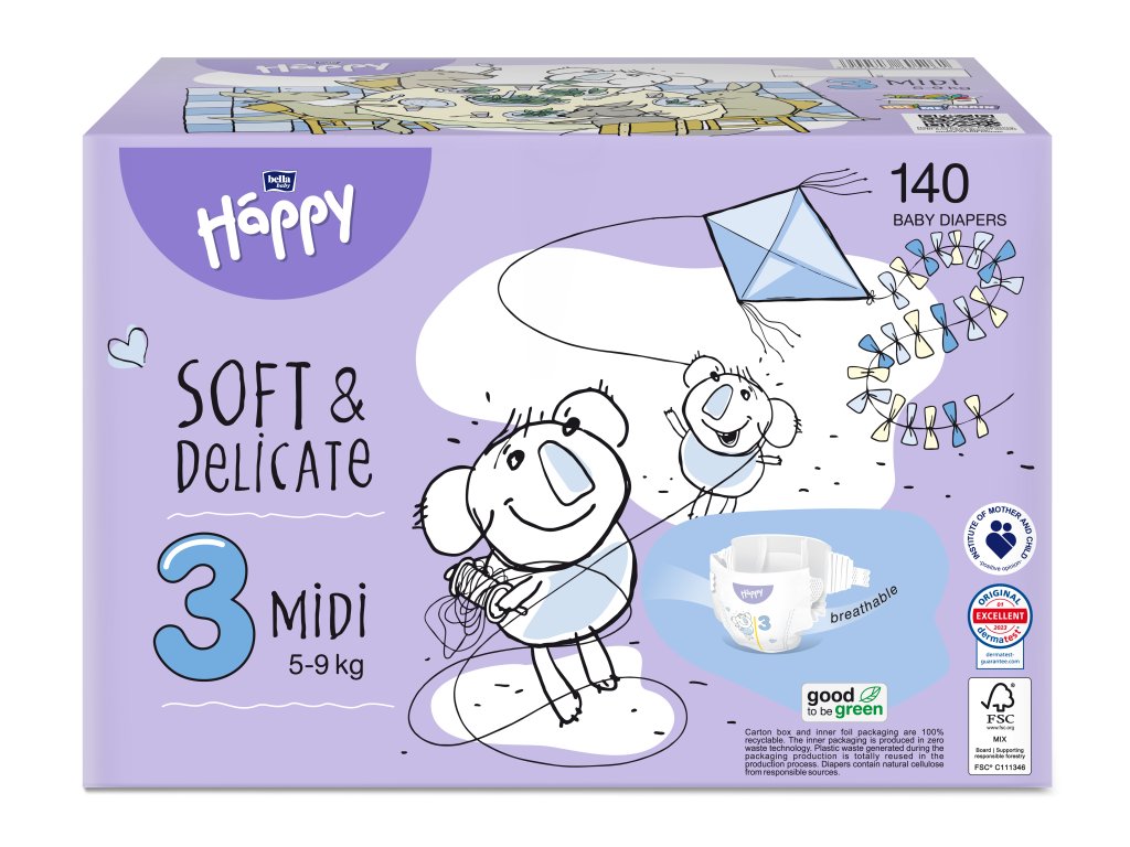Bella HAPPY S&D taglia 3 Midi 5-9 kg Scatola 70 x 2 pezzi