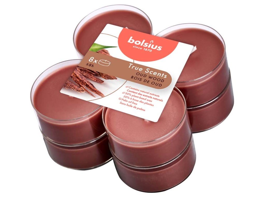 Bolsius Aromatic 2.0 Candele profumate Maxi 8 pezzi, legno di Oud