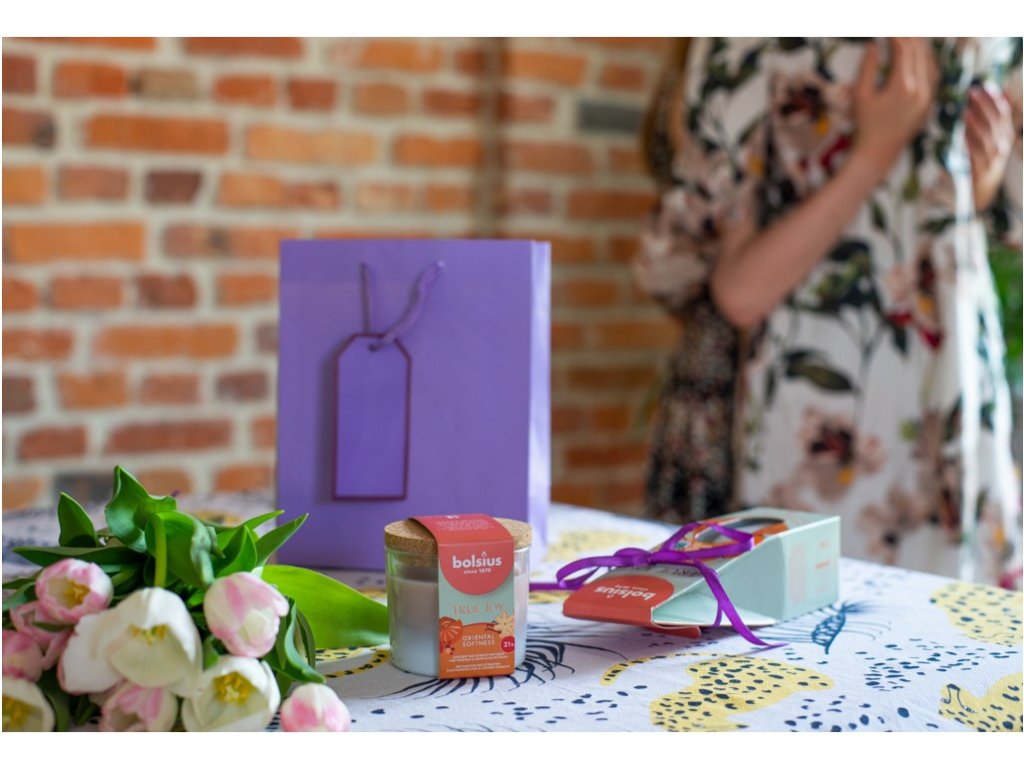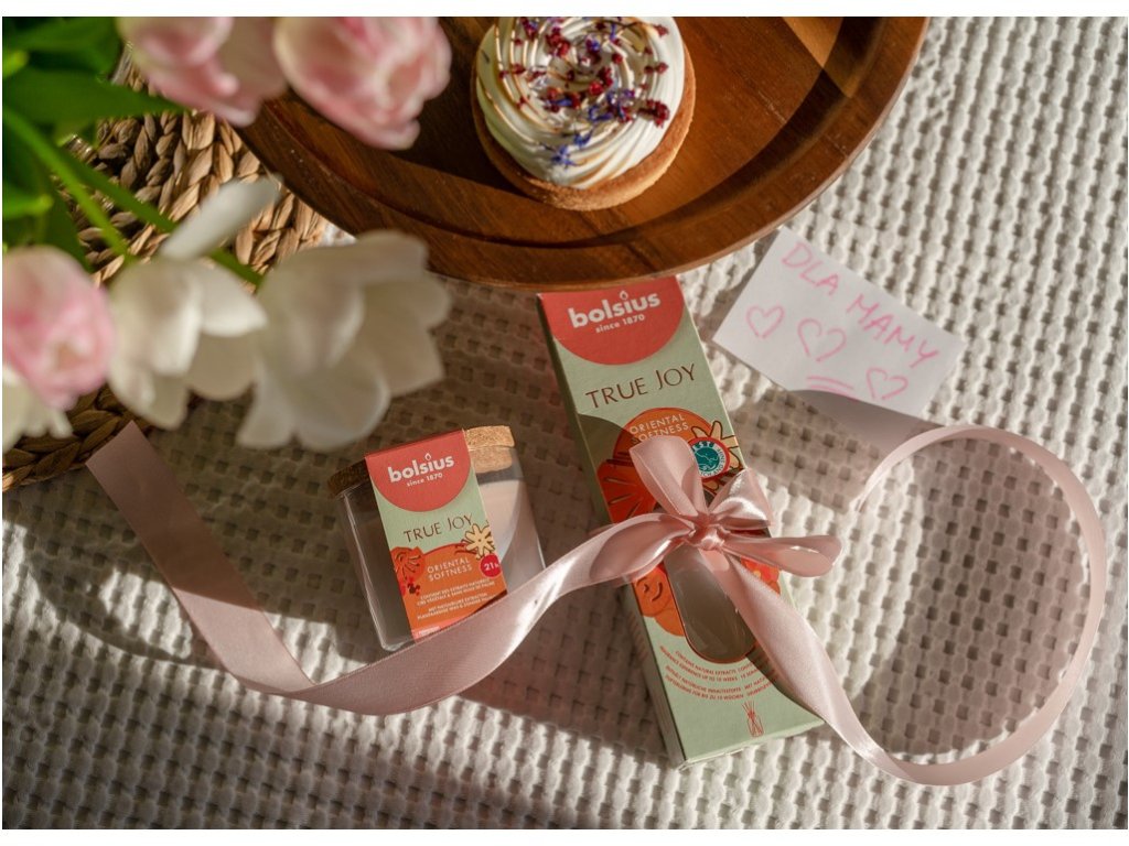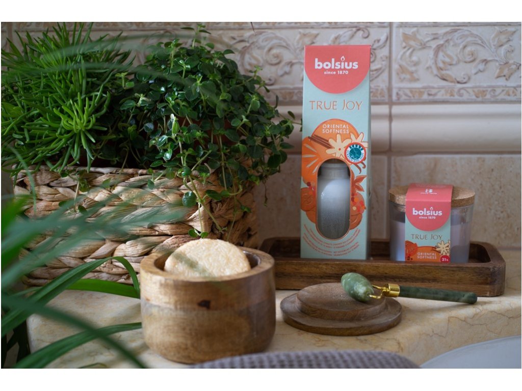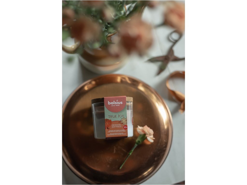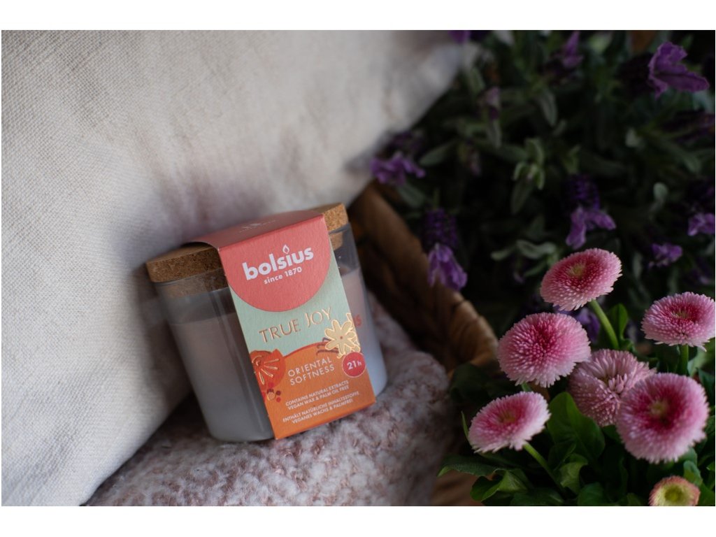 Candela profumata Bolsius in vetro con tappo in sughero, 80x75mm, True Joy Oriental Softness