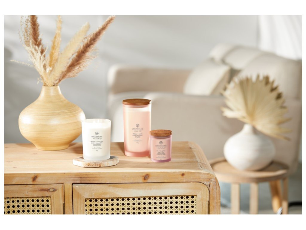 Candela di cera di soia di alta qualità con oli essenziali naturali e un effetto aromaterapico su mente e corpo. Profuma l'ambiente fino a 57 ore.Parametri aggiuntivi