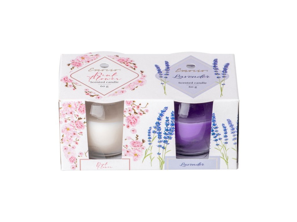 Candela profumata Emocio in vetro Fiore rosa e lavanda 2 pezzi in una scatola 65x63mm