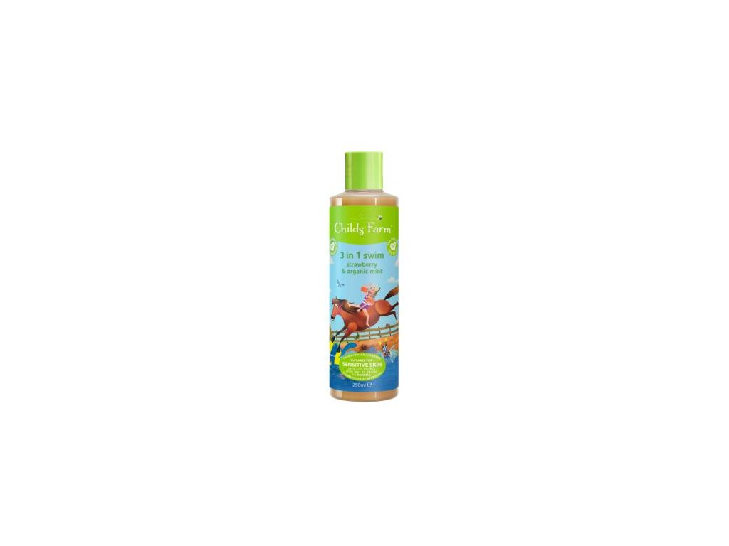 Childs Farm 3 in 1 Gel doccia, shampoo e balsamo dopo il bagno fragola e menta 250 ml