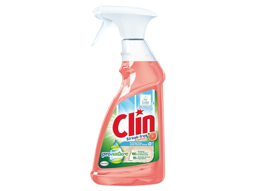 Clin Pro Nature è un detergente per vetri naturale di alta qualità, contenente il 99,9% di ingredienti naturali. Clin Pro Nature dona lucentezza ai vetri e a tutte le superfici trattate, senza lasciare aloni. La confezione del prodotto è realizzata in plastica riciclabile al 100%. Rimuove acqua, polvere e sporco dalle superfici, prevenendone anche il rapido sporcamento. Il risultato è una lucentezza ancora più duratura, senza aloni, sia all'interno che all'esterno.