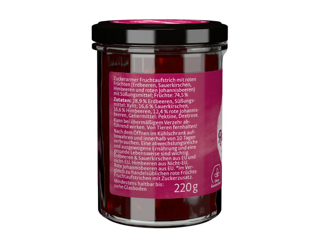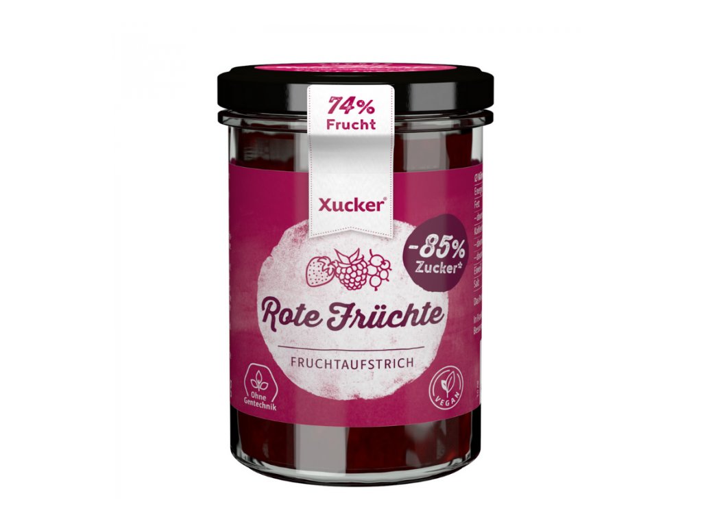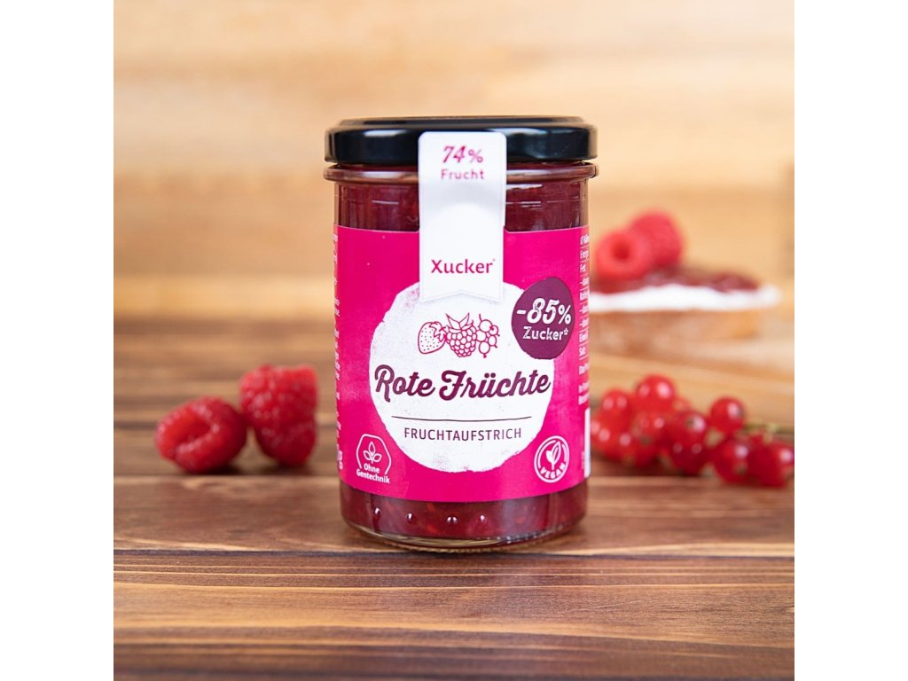 La confettura di frutti rossi vanta un contenuto di frutta del 74,5% , che crea un'irresistibile combinazione di fragole, ciliegie, lamponi e ribes rosso , ed è inoltre priva di conservanti e coloranti inutili . Inoltre, apprezzerai il basso contenuto di zucchero . Tuttavia, non sarai privato del sapore dolce, poiché lo xilitolo, che ha un valore calorico inferiore , si prenderà cura di esso, quindi anche le persone interessate a uno stile di vita sano possono godere della confettura. 100 grammi hanno solo 110 kcal , quindi puoi concederti uno strato più grande.
