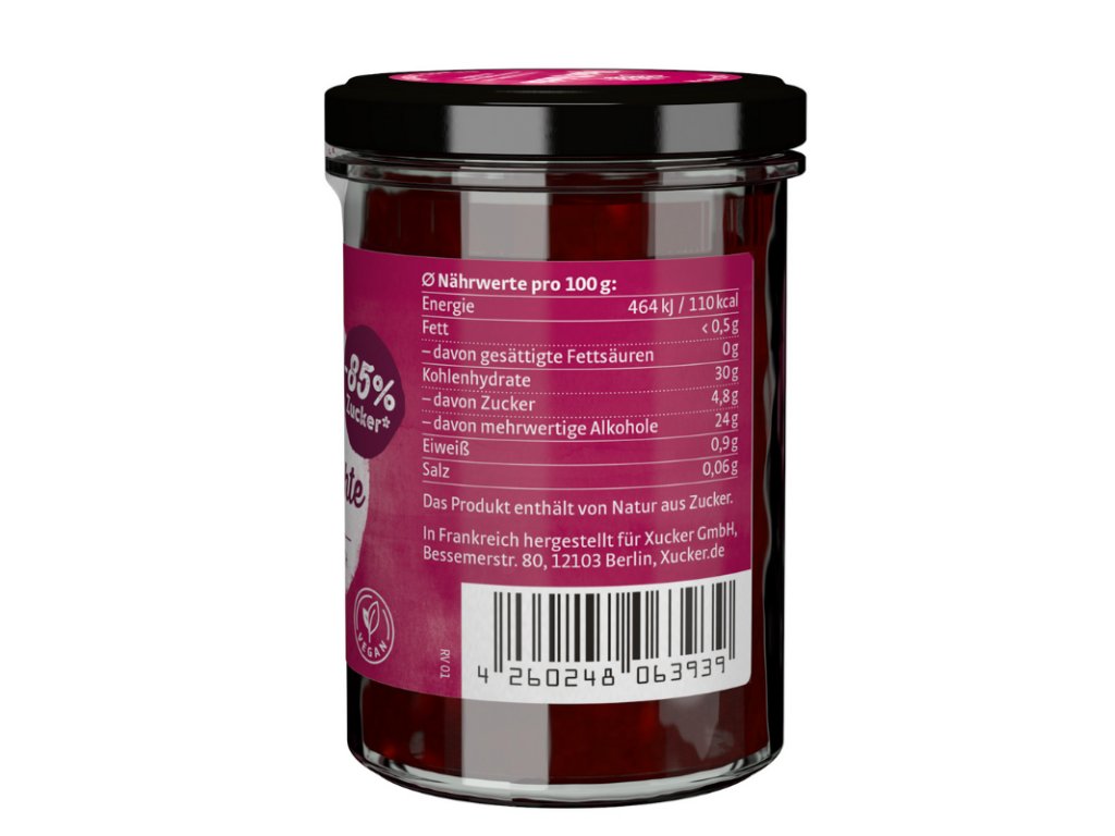 Il destrosio presente nel prodotto non viene utilizzato attivamente per dolcificare. È un componente della pectina utilizzata per la gelificazione a partire da materie prime naturali. Senza l'aggiunta di destrosio, la qualità funzionale della pectina non può essere garantita. Tuttavia, il suo contenuto è trascurabile e non ha praticamente alcun effetto sul contenuto totale di zuccheri.