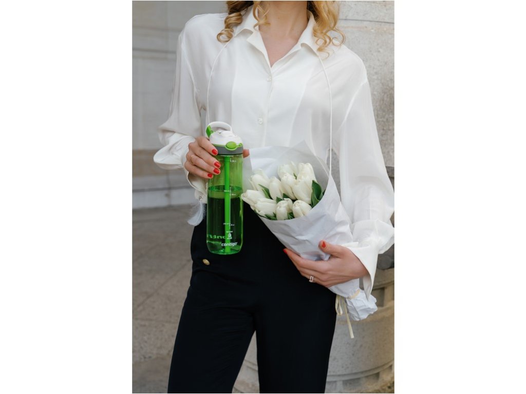 La bottiglia è realizzata in Tritan, un innovativo materiale che contiene in media il 50% di materiale riciclato. Questa plastica di alta qualità è assolutamente ideale per un uso ripetuto. Non dovrete preoccuparvi di odori sgradevoli che potrebbero depositarsi nella bottiglia o di antiestetiche macchie causate dalle bevande. La vostra acqua avrà sempre un sapore fresco e la bottiglia avrà un aspetto impeccabile. L'utilizzo con una sola mano offre il massimo comfort non solo durante l'attività sportiva, ma anche in viaggio. Con una semplice pressione di un pulsante, è possibile ruotare il beccuccio verso l'alto. Il beccuccio con il coperchio può essere facilmente rimosso per una pulizia accurata. Sia il coperchio che il corpo della bottiglia sono adatti al lavaggio in lavastoviglie nel cestello superiore. Il blocco del pulsante di erogazione impedisce l'apertura accidentale durante i viaggi. Adatto alla maggior parte dei portabicchieri per auto e biciclette. Il prodotto non è a prova di fuoriuscita in posizione aperta, quindi si consiglia di trasportarlo in posizione verticale.Parametri aggiuntivi