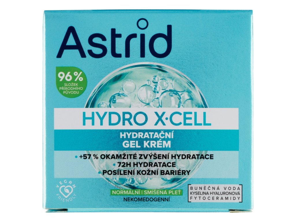 La crema gel idratante Astrid Hydro X Cell contiene il 96% di ingredienti di origine naturale. La formula in gel leggera e ultra-idratante, con il 5% di un potente complesso multiattivo contenente acqua cellulare di spirulina 100% naturale, acido ialuronico e fitoceramidi, offre un'idratazione immediata e la fissa per risultati duraturi. L'acqua cellulare di spirulina, ricca di nutrienti, contiene il potere di un superalimento che aumenta efficacemente l'idratazione della pelle. L'acido ialuronico rimpolpa la pelle contribuendo a fornire idratazione. Le fitoceramidi rafforzano la barriera protettiva della pelle, trattenendo l'idratazione. Coccola la tua pelle con i prodotti Astrid.