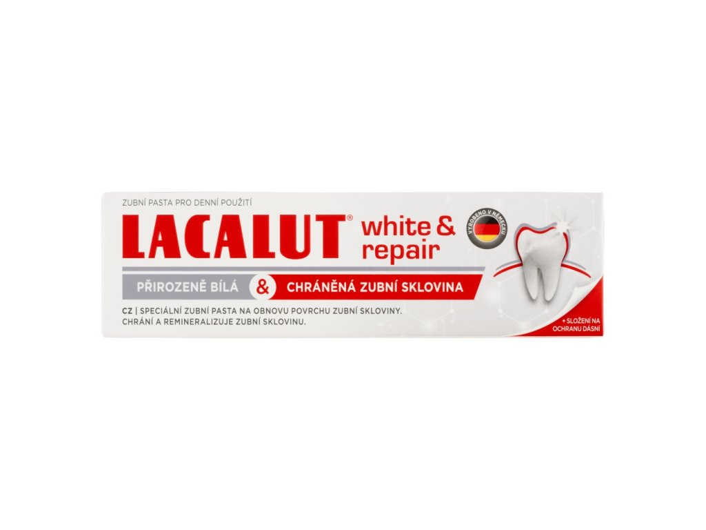 Il dentifricio Lacalut White & Repair è uno speciale dentifricio per il ripristino della superficie dello smalto dei denti con effetto sbiancante. Protegge e rimineralizza lo smalto dei denti e ne ripristina la superficie danneggiata grazie al componente naturale idrossiapatite. Agisce contro acidi e batteri che attaccano quotidianamente la struttura minerale dello smalto dei denti. Ingredienti attivi: idrossiapatite, il componente principale dei denti, favorisce i processi di riparazione dello smalto, lattato di alluminio, un principio attivo astringente contro il sanguinamento gengivale, fluoruro di sodio, che favorisce la remineralizzazione dello smalto dei denti.