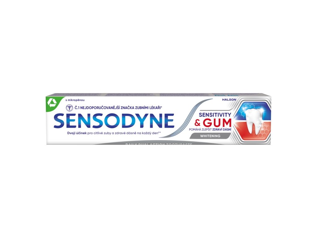 Il dentifricio Sensodyne Sensitivity & Gum offre un sollievo clinicamente provato per i denti sensibili e aiuta a migliorare la salute delle gengive. Crea uno strato protettivo sulle aree sensibili dei denti e dona sollievo ai denti sensibili. Rimuove i batteri dalla placca dentale, contribuendo a ridurre i problemi gengivali. Ora puoi affrontare entrambi i problemi con un unico dentifricio speciale. Il dentifricio Sensodyne Sensitivity & Gum è un dentifricio al fluoro per uso quotidiano.