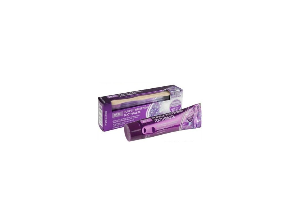 Dentifricio sbiancante Xoc Purple Whitening 100 ml + spazzolino in bambù 1 pz.