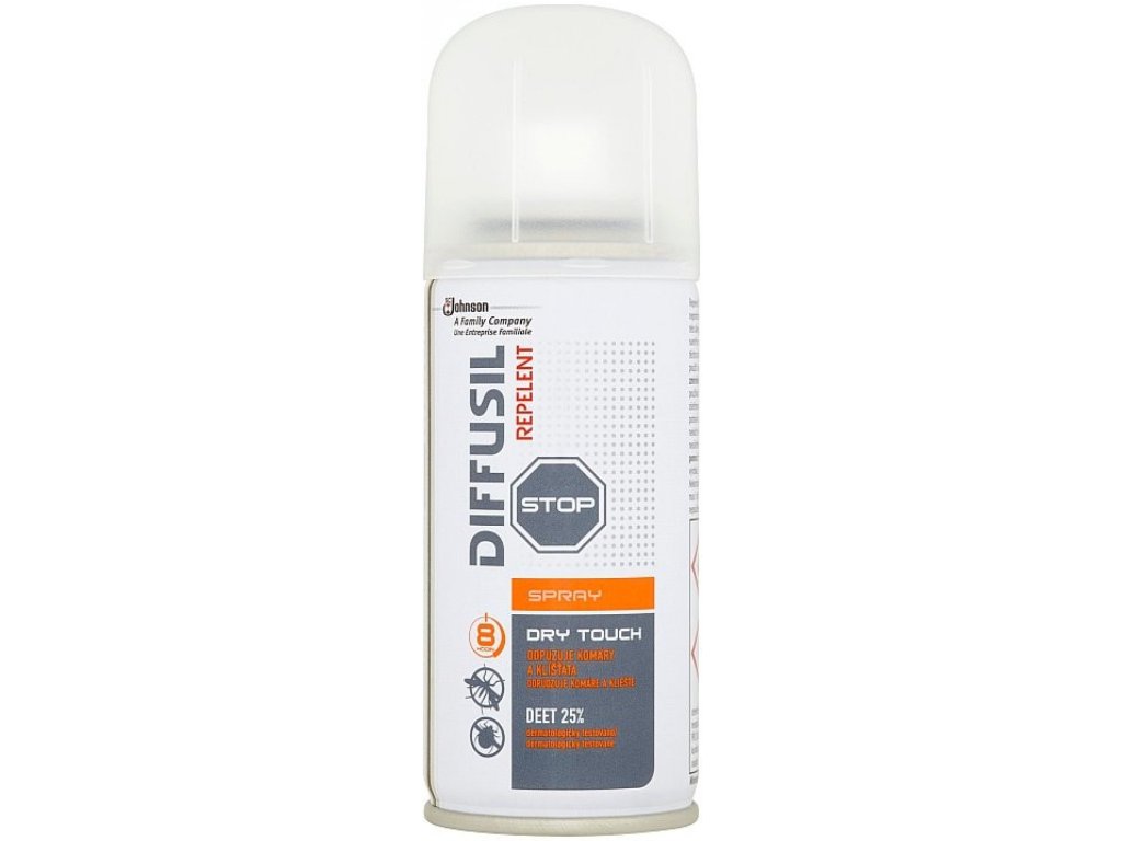 Diffusil® repellente Spray Dry in aerosol agisce immediatamente fino a 8 ore dopo l'applicazione. Respinge zanzare e zecche. È ideale per l'uso quotidiano all'aperto.