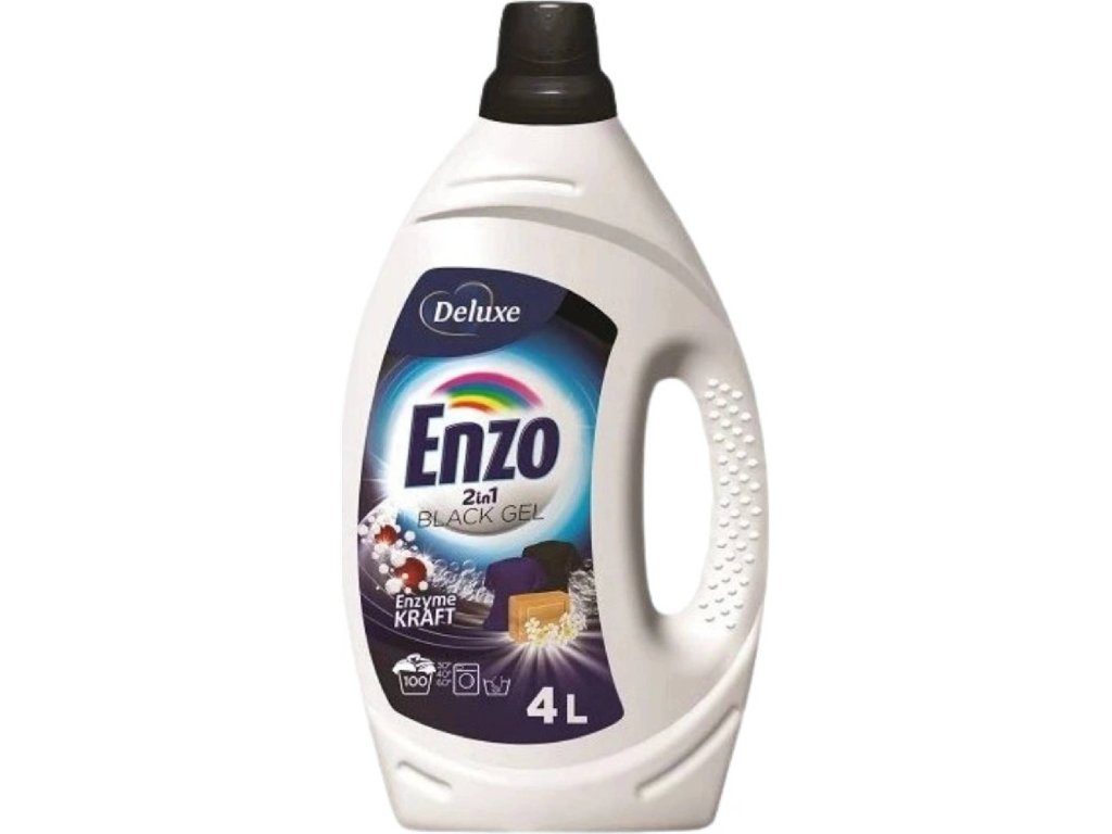 Enzo Deluxe Black è un gel detergente liquido appositamente sviluppato per il lavaggio di capi scuri e neri. Aiuta a proteggere i colori dallo sbiadimento, preserva la saturazione e l'intensità delle tonalità, rimuovendo delicatamente lo sporco. Adatto al lavaggio di capi in fibre naturali e sintetiche in tutti i tipi di lavatrice e per il lavaggio a mano.