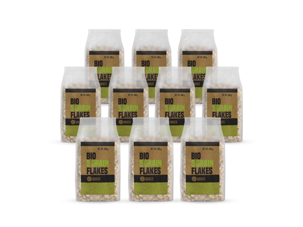 Fiocchi BIO 5 cereali - una miscela di fiocchi di cinque tipi di cereali, fonte di proteine, con un alto contenuto di fibre e un ottimo sapore