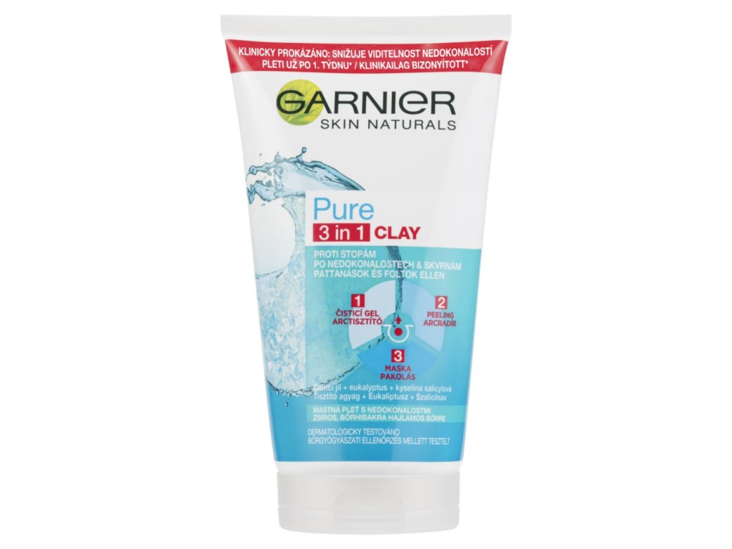 Garnier Pure 3 in 1 è un prodotto unico che unisce l'efficacia di un gel detergente, di un peeling e di una maschera viso . È studiato per pelli da miste a grasse, con una maggiore formazione di imperfezioni, punti neri e tendenza alla lucidità.