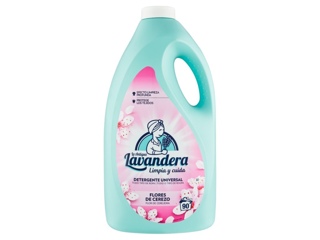 Con un volume di 4,5 l, il gel detergente Lavandera Cherry Blossom consente fino a 90 lavaggi.