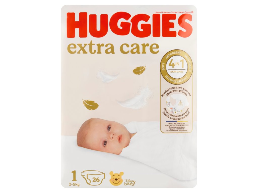 Gli innovativi pannolini usa e getta premium Huggies EXTRA CARE sono i pannolini più morbidi e delicati del marchio HUGGIES®.