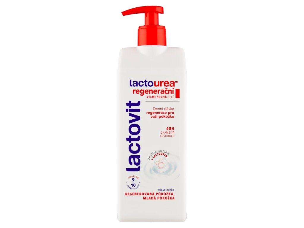 La lozione corpo Lactovit Lactourea, contenente il 10% di Lactourea (un complesso unico di acido lattico e urea pura), fornisce la massima idratazione e rigenera la pelle . L'urea idrata naturalmente e previene la perdita di acqua nella pelle. I dermatologi la raccomandano per la cura della pelle molto secca. L'acido lattico rafforza anche l'idratazione della pelle.