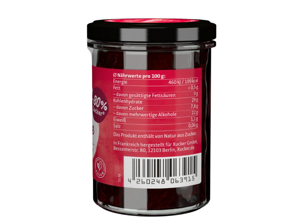 Il destrosio presente nel prodotto non viene utilizzato attivamente per dolcificare. È un componente della pectina utilizzata per la gelificazione a partire da materie prime naturali. Senza l'aggiunta di destrosio, la qualità funzionale della pectina non può essere garantita. Tuttavia, il suo contenuto è trascurabile e non ha praticamente alcun effetto sul contenuto totale di zuccheri.