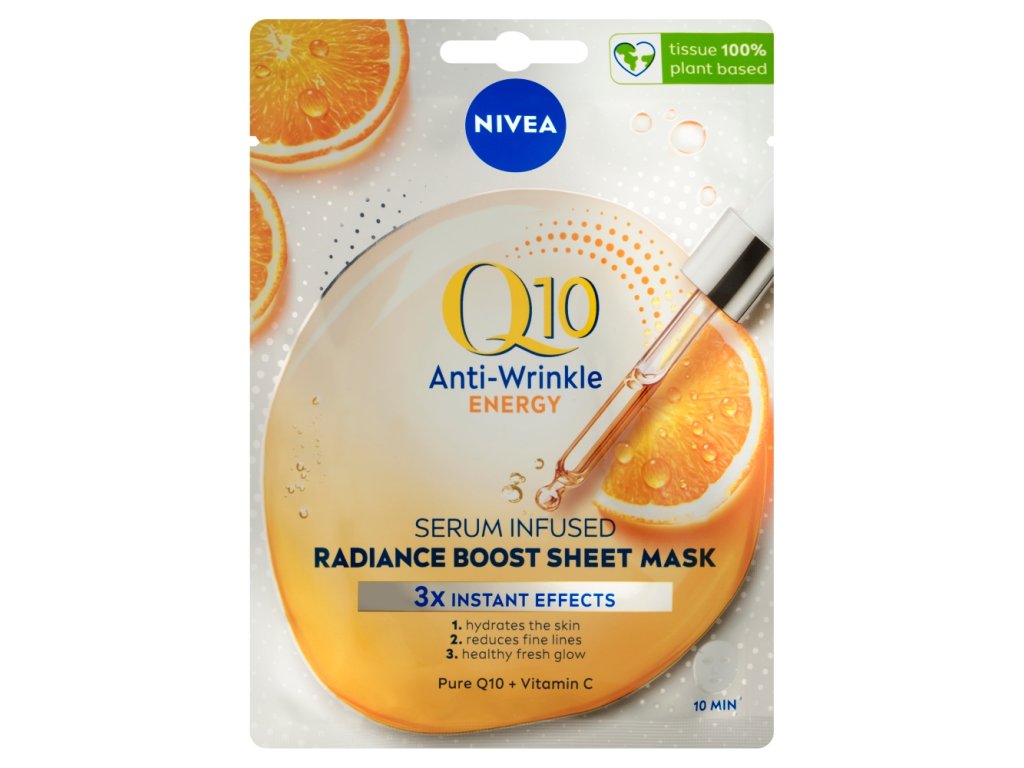 Maschera viso in tessuto Nivea Q10 Plus C Antirughe + Energia da 10 minuti, 1 pz.