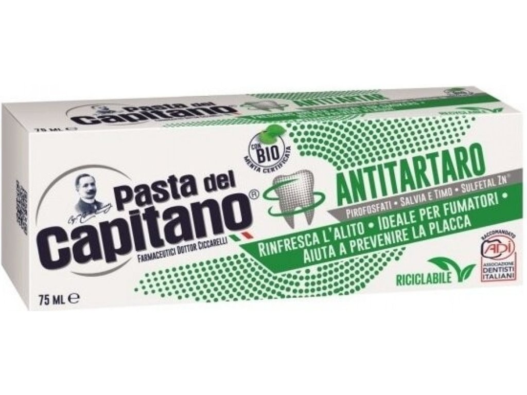 Pasta del Capitano Antitartaro dentifricio per fumatori alla menta BIO 75 ml