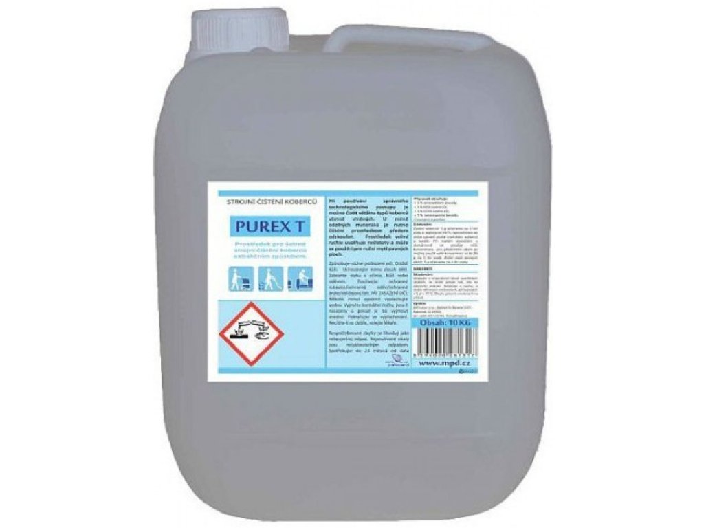 Purex T è progettato per la pulizia di tappeti, rivestimenti per pavimenti, tappezzerie e rivestimenti mediante aspirazione con macchine per la pulizia ad estrazione e altre macchine per pavimenti con successiva aspirazione a umido. È molto efficace anche per il lavaggio di pavimenti non assorbenti (PVC, piastrelle) con metodi manuali convenzionali. Il prodotto ha una ridotta formazione di schiuma ed è formulato con tensioattivi di tipo saponoso.