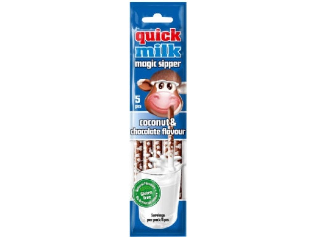 Trasforma il tuo latte in una deliziosa bevanda al gusto di cioccolato e cocco con le magiche cannucce Quick Milk! Basta inserire la cannuccia in un bicchiere di latte freddo o caldo (circa 200-250 ml) e gustare il fantastico gusto mentre bevi. Ogni confezione contiene 5 cannucce da 6 g ciascuna, ideali per bambini e adulti.