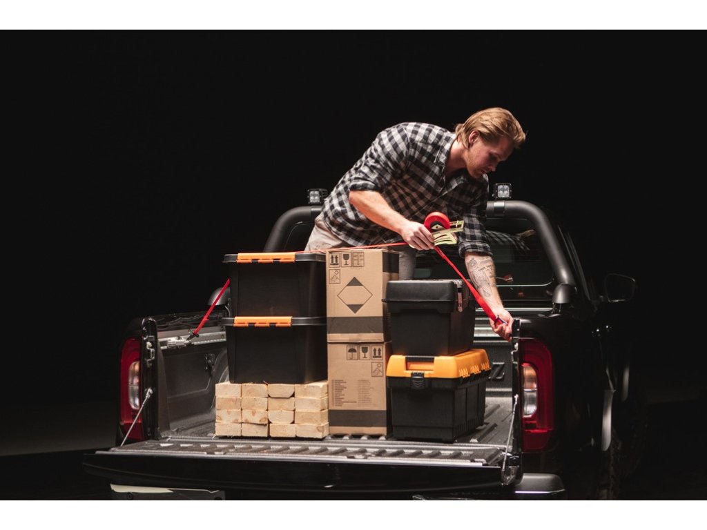 Il sistema di fissaggio QUICKLOADER® con una capacità di carico fino a 1200 kg e una lunghezza di 4,5 m (regolabile da 0,7 a 3,8 m) è un aiuto affidabile per il trasporto di carichi più pesanti. È progettato per l'uso quotidiano in ambienti difficili: ideale per camionisti, artigiani e proprietari di case più esigenti. Il meccanismo di avvolgimento integrato funziona in modo fluido e senza inceppamenti: la cinghia non si aggroviglia, è sempre pronta all'uso immediato e non teme polvere, umidità o altro sporco. L'impugnatura allungata consente un serraggio efficace con il minimo sforzo. Il facile rilascio è garantito da una pratica aletta che funziona senza problemi anche con guanti da lavoro o in condizioni di scarsa illuminazione. I robusti ganci con rivestimento in gomma aiutano a proteggere il carico da eventuali danni, mentre gli anelli a "D" universali ampliano le possibilità di fissaggio: li apprezzerete soprattutto dove i ganci classici non possono essere utilizzati. Tutte le parti metalliche sono trattate con una superficie sabbiata, che aumenta la resistenza all'usura e alla corrosione, garantendo così una lunga durata anche in caso di utilizzo frequente.Parametri aggiuntivi