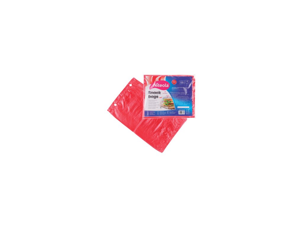 Sacchetti per snack Niteola, HDPE, 20 × 30 cm, spessore 12 µ, rosso, 50 pezzi.