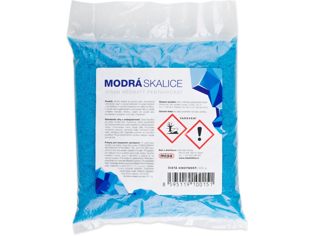 Il solfato di rame è noto come "sabbia blu". È uno dei composti di rame più comuni ed è il sale di rame più prodotto industrialmente. Adatto per l'uso contro la muffa sulle piante, per impregnare il legno contro i funghi e per prevenire la crescita di alghe nelle piscine. Per piscine: il dosaggio di "sabbia blu" per distruggere le alghe è di circa 5 g per 1 m³ di acqua. Non dimenticare l'applicazione regolare. La "sabbia blu" è adatta per l'uso come prevenzione contro la formazione di alghe circa una volta ogni 2-3 settimane. È possibile rimuovere le alghe acquatiche all'inizio della stagione con la "sabbia blu"; se la loro incidenza aumenta, è possibile aggiungere fino a 7 g di "sabbia blu" per 1 m³ di acqua. La "sabbia blu" è un fertilizzante a base di rame destinato alla nutrizione supplementare delle colture agricole con un maggiore fabbisogno di rame. Ha un effetto positivo sulla stabilità della clorofilla e prolunga il periodo di fotosintesi attiva. La sua carenza riduce significativamente l'uso di azoto dai fertilizzanti. Utilizzo: su terreni leggeri e acidi, per contrastare muschi, licheni e malattie delle piante. Il sintomo caratteristico della carenza di rame sono le macchie bianche.