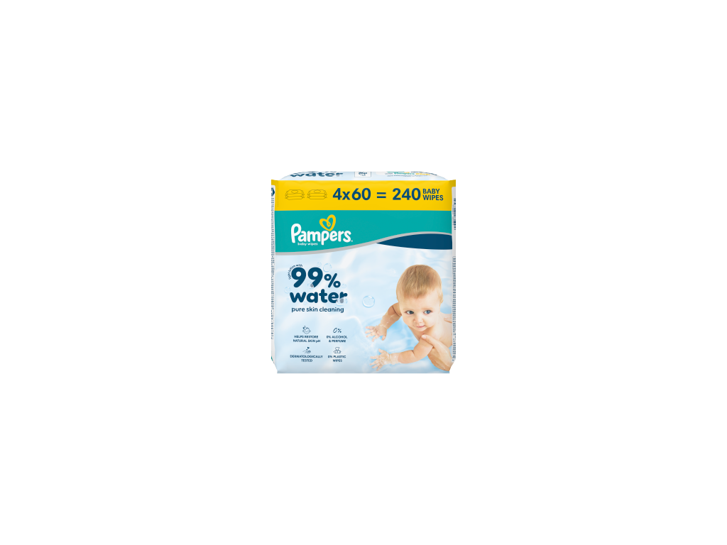Salviette Pampers (4x60/foglio) Aqua zero plastica