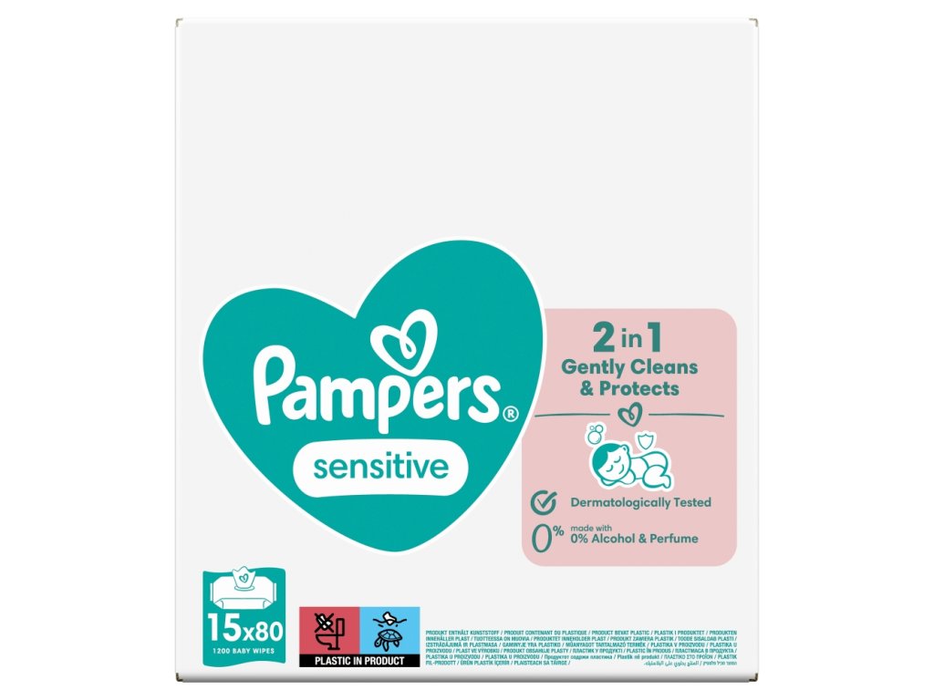 Salviettine umidificate Pampers Sensitive per neonati 15 x 80 pezzi + GRATIS Spazzolino da denti Lacalut
