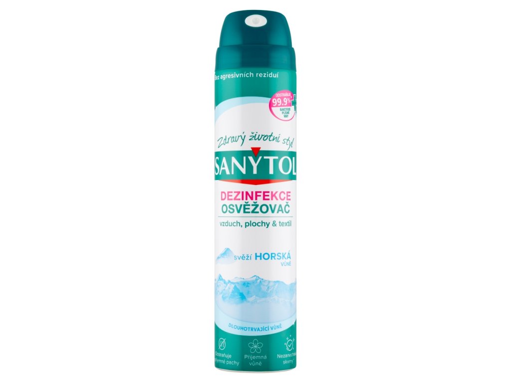 SANYTOL purifica l'aria e disinfetta le superfici in un unico passaggio. La sua composizione garantisce un'igiene perfetta e lascia un gradevole profumo di fresco. Elimina il 99,9% di batteri, funghi e virus, incluso il virus dell'influenza A (H1N1).