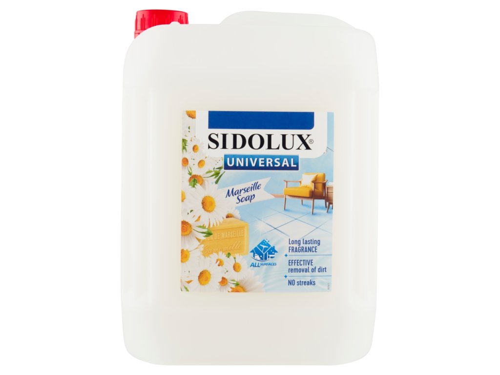 Detergente universale profumato Sidolux per tutte le superfici lavabili e i pavimenti, al profumo di sapone di Marsiglia. Profumo ricco ma delicato di sapone di Marsiglia con un leggero sentore di camomilla e gelsomino.