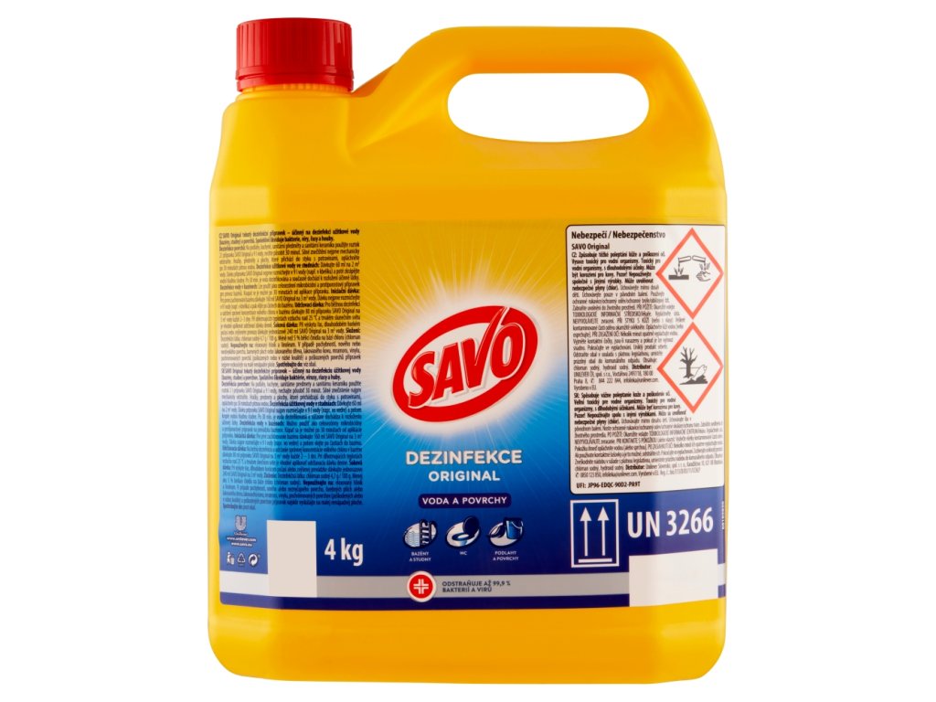 Disinfettante liquido Savo Original : efficace per disinfettare l'acqua di rete (piscine, pozzi) e le superfici. Elimina in modo affidabile batteri , virus , alghe e funghi .