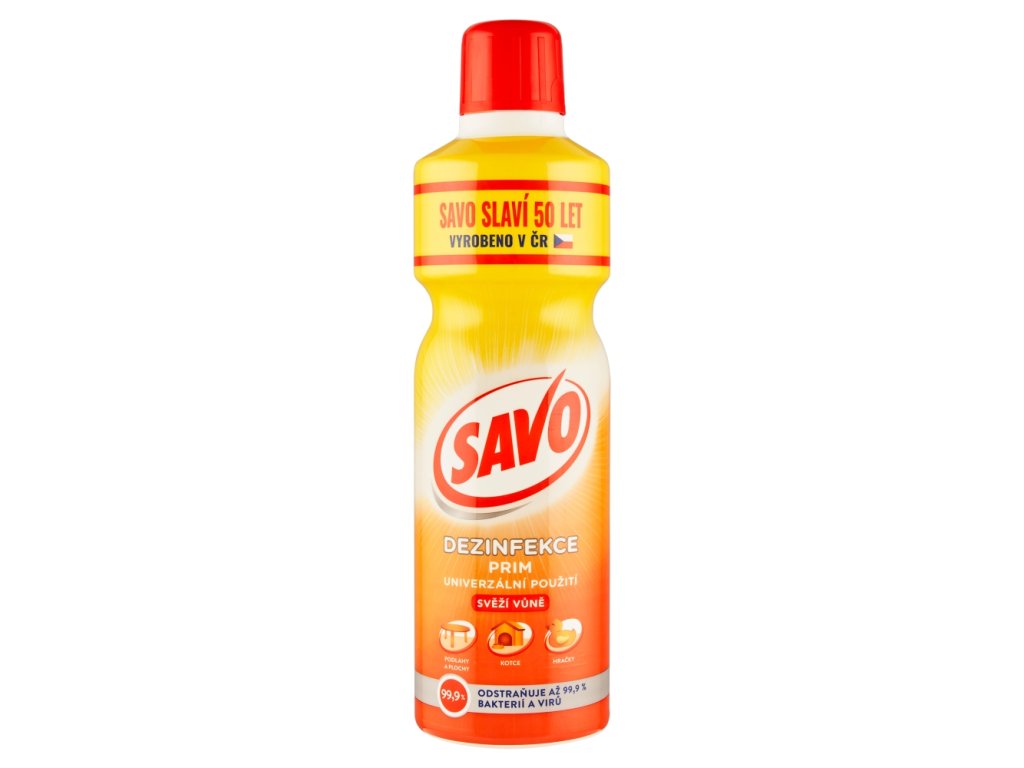 Savo Prim Fresh scent - detergente e disinfettante liquido pulisce e disinfetta efficacemente e dona alla tua casa un tocco di fresca pulizia. Savo Prim è un detergente universale , adatto anche alle famiglie con animali domestici. Elimina in modo affidabile il 99,9% di batteri , virus , lieviti e muffe .