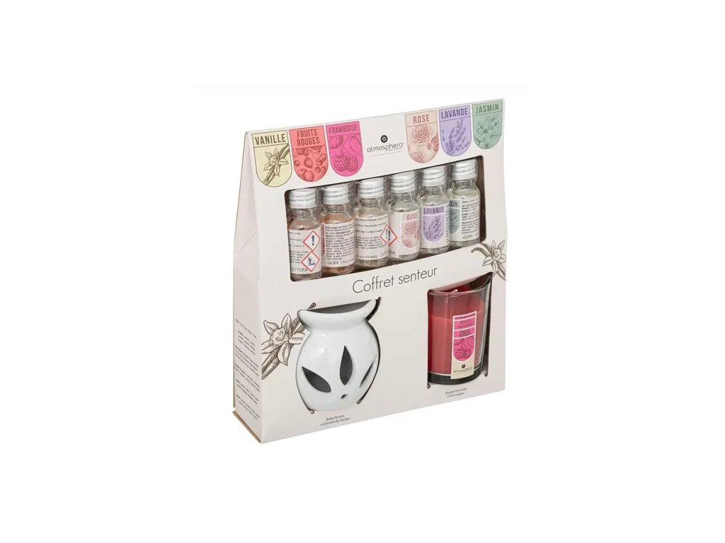 Il set ATMOSPHERA è il regalo perfetto che renderà ogni casa accogliente. L'elegante lampada per aromi non è solo bella da vedere, ma crea anche un'atmosfera piacevole. Basta posizionare una candela tealight nella lampada e applicare la fragranza preferita nella ciotola superiore, che si preferisca il profumo di frutti rossi, rose o la rilassante lavanda. Bastano poche gocce e... La tua casa sarà piena di aromi interessanti . L'utilizzo della lampada per aromi è completamente silenzioso e il suo design si adatta a qualsiasi stanza. Il set regalo include anche una candela in vetro al profumo di frutti rossi, che ti metterà di buon umore.