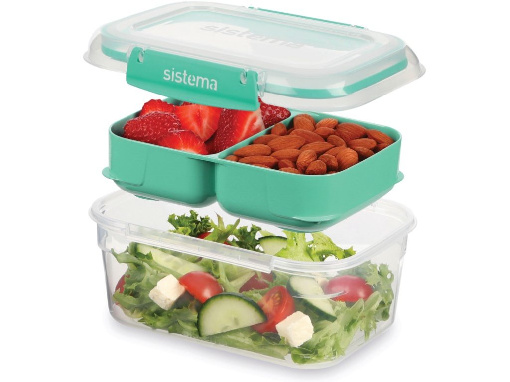 Il Sistema 1L TO GO STAX è la scelta ideale per chi cerca un modo pratico ed elegante per trasportare il cibo in sicurezza al lavoro, a scuola o in viaggio. Il vassoio rimovibile consente di separare diversi tipi di cibo, così da poter gustare uno spuntino fresco e gustoso sempre e ovunque. La forma impilabile garantisce il massimo utilizzo dello spazio in dispensa, frigorifero e congelatore. Le clip Sistema® facili da chiudere e la guarnizione flessibile mantengono il cibo fresco più a lungo. Vantaggi: • 100% a tenuta stagna ed ermetico • Scomparti separati per alimenti • Scatole e coperchi impilabili • Plastica resistenteParametri aggiuntivi