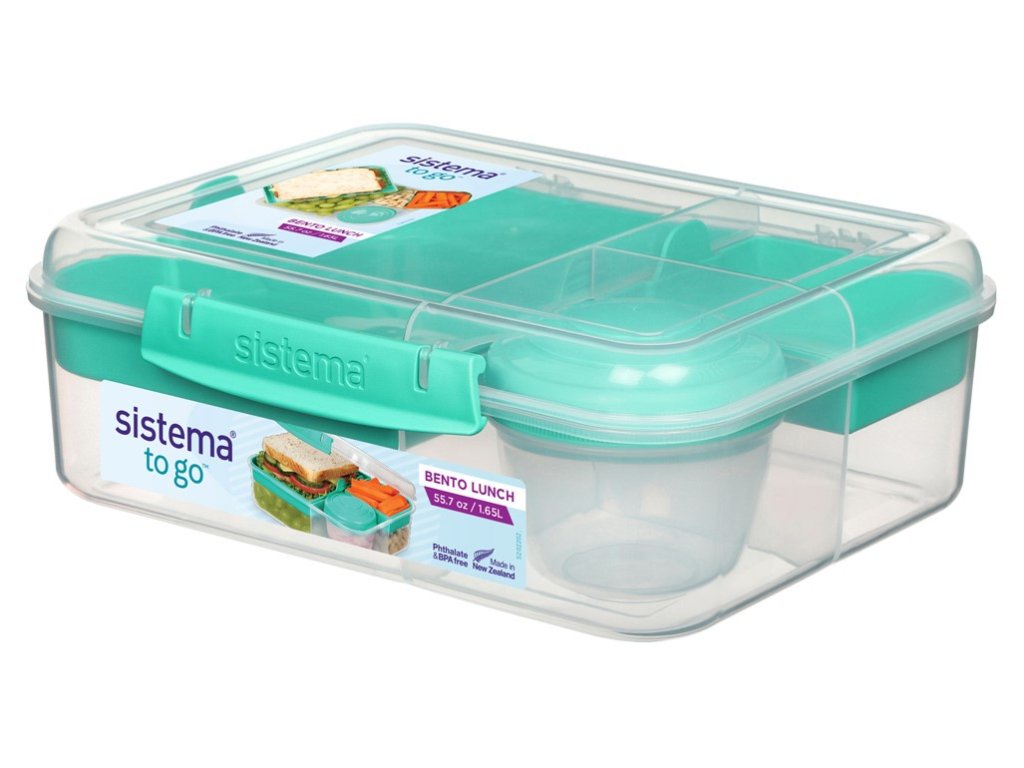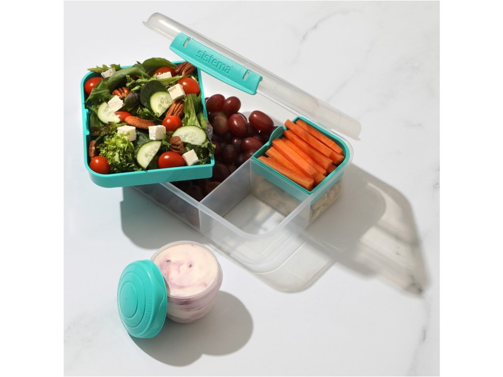 Sistema Divided To Go Bento Lunch Box con contenitore per yogurt e 2 vassoi 1,65 L, Menta