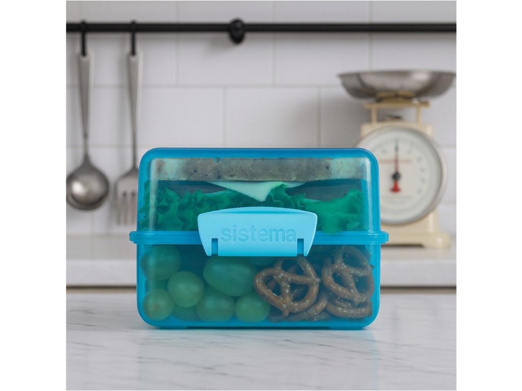 Il contenitore è composto da due livelli, offrendo ampio spazio per un pranzo vario ed equilibrato. Lo scomparto grande è ideale per riporre panini, mentre gli scomparti più piccoli sono perfetti per frutta, verdura, noci o altri piccoli snack. Vantaggi: • Ideale per i bambini • Facile da chiudere: Sistema® clip • Spazioso e praticoParametri aggiuntivi
