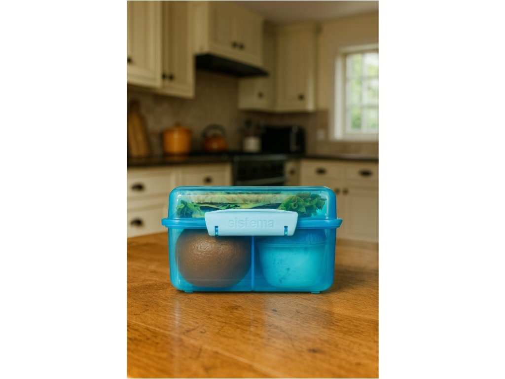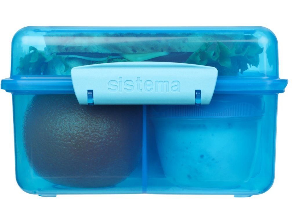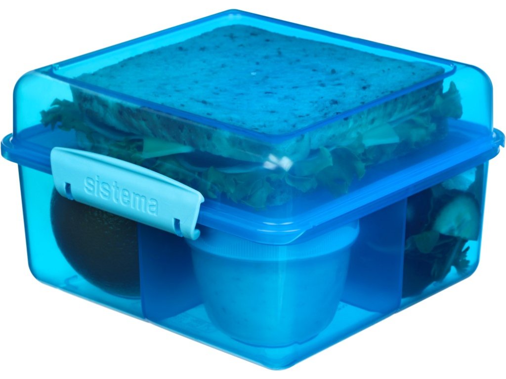 Sistema Lunch Cube Max Diviso Snack Box con Contenitore per Yogurt con Doppio Coperchio 2 L, Blu