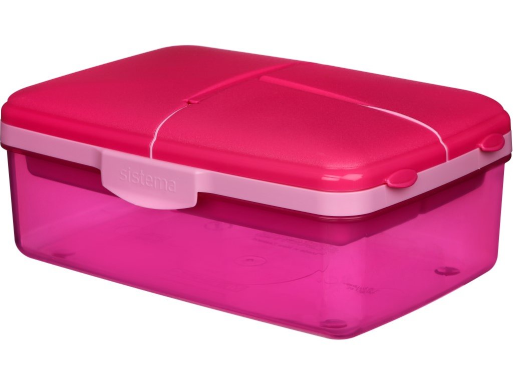 Sistema Lunch Quaddie 1,5 l contenitore per snack diviso con 3 scomparti incernierati nel coperchio e una borraccia, rosa