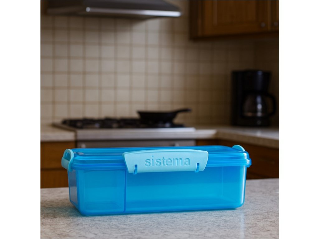 Sistema Lunch Snack Attack Duo Diviso Snack Box con 2 Scomparti Separati 975 ml, Blu