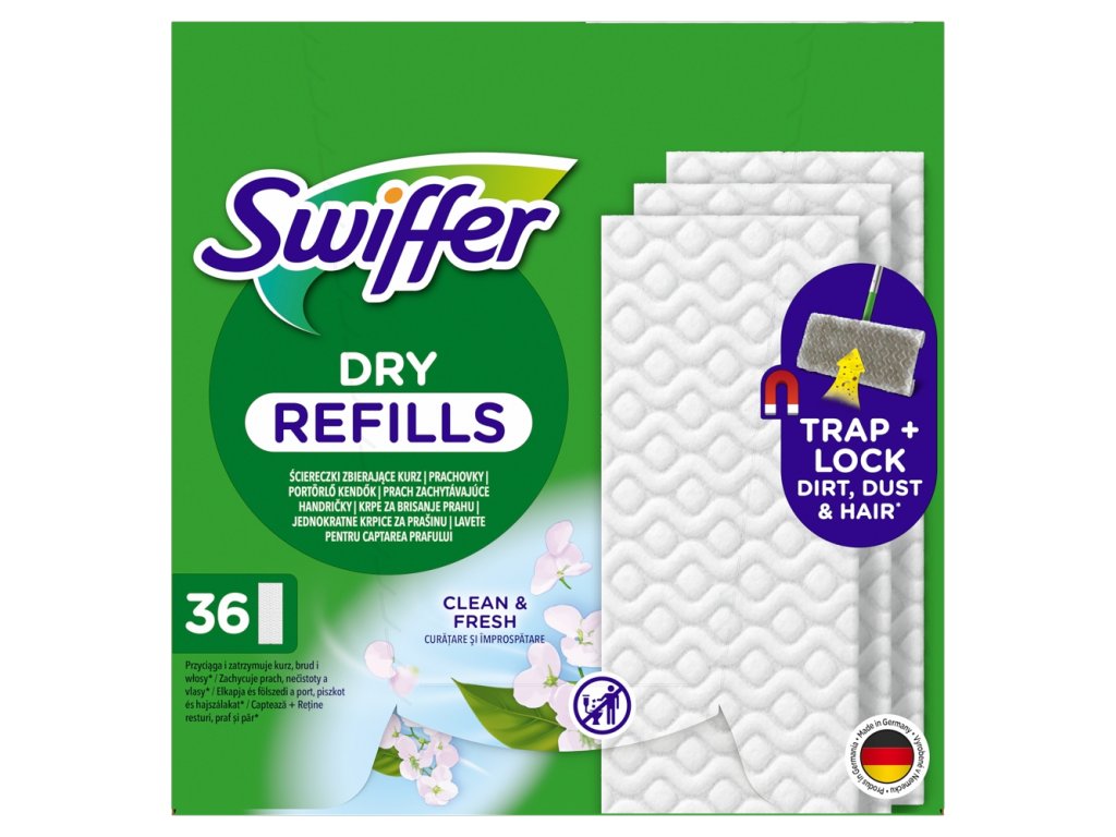 I piumini hanno un effetto elettrostatico che, combinato con la loro forza e la loro forma specifica, permette loro di catturare tutta la polvere. La scopa Swiffer ha una testina rotante a 360°, grazie alla quale puoi pulire tutti i punti, anche quelli difficili da raggiungere (sotto il frigorifero, il forno e la lavastoviglie, sotto il letto o il divano) o negli angoli dove le normali scope e mocio solitamente non arrivano. Fantastico. Con i piumini Swiffer, pulire sarà più veloce e facile che mai.