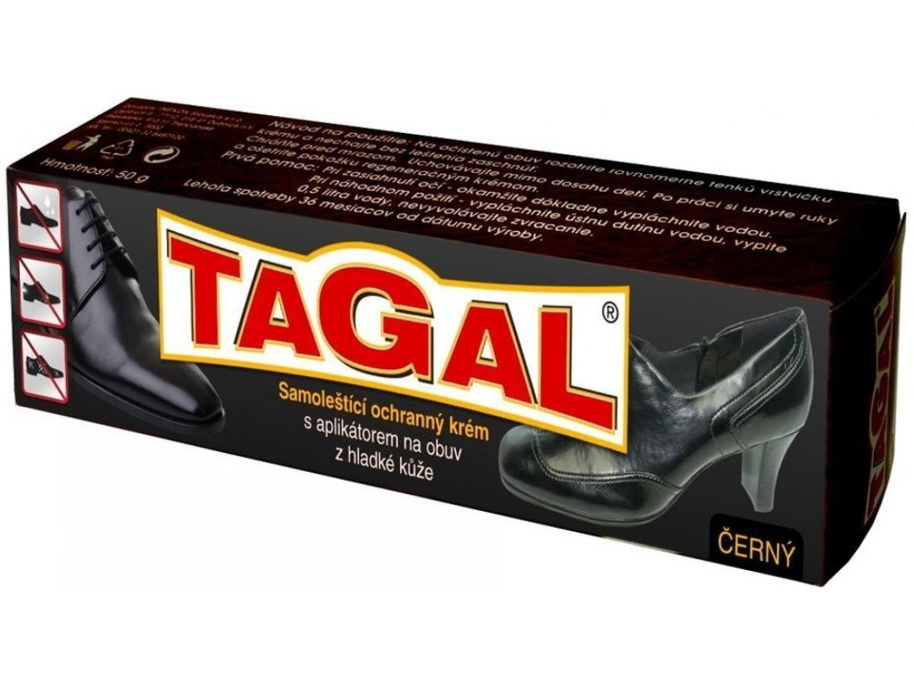 Tagal - crema protettiva autolucidante per scarpe, nera 50 g, con applicatore