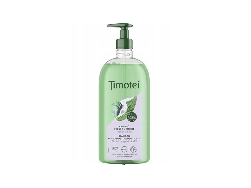 Lo shampoo Timotei con estratto di erbe alpine si prende cura dei capelli opachi e deboli, donando loro una lucentezza naturale.